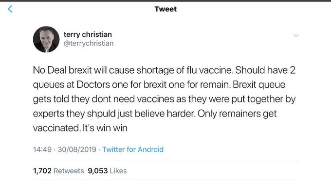 Much more than this, Leave voters, Labour or otherwise, have endured four-plus years of vilification, insult and disenfranchisement. The BBC transmogrified itself into a Stalinist news agency shoehorning anti-Brexit features into everything from Countryfile to The One Show. Host, warmly spoken Matt, was forced to qualify in one edition, ‘Here at The One-Show, we would like to say that not everyone who voted Leave did so with hatred in their hearts.’ Subtext: a lot of them did. On the radio there was a quip about throwing battery acid at Brexit campaigners passed off as comedy and Terry Christian, who publicly welcomed the death of elderly voters, was repeatedly invited on to our screens. Polly Toynbee kept count for The Guardian. Cheery Jeremy Vine rang elderly people to tell them they shouldn’t be allowed to vote, since voting or counting votes at least, suddenly became optional in the UK. The story of Brexit is not the referendum, it is the backlash. It began before the referendum itself with mostly northern, working-class voters harangued in TV studios and Obama telling us we would have to get to the back of the queue, like some presidential dinner lady. It began as mere snobbery, but after the result, became class hatred of Victorian proportions. The establishment and the middle classes were furious, they had lost control of the political agenda. Indeed, so gratuitous was the response that it ended up stiffening the resolve of Leave voters and possibly drew people into the camp. The calumny helped achieve Brexit.